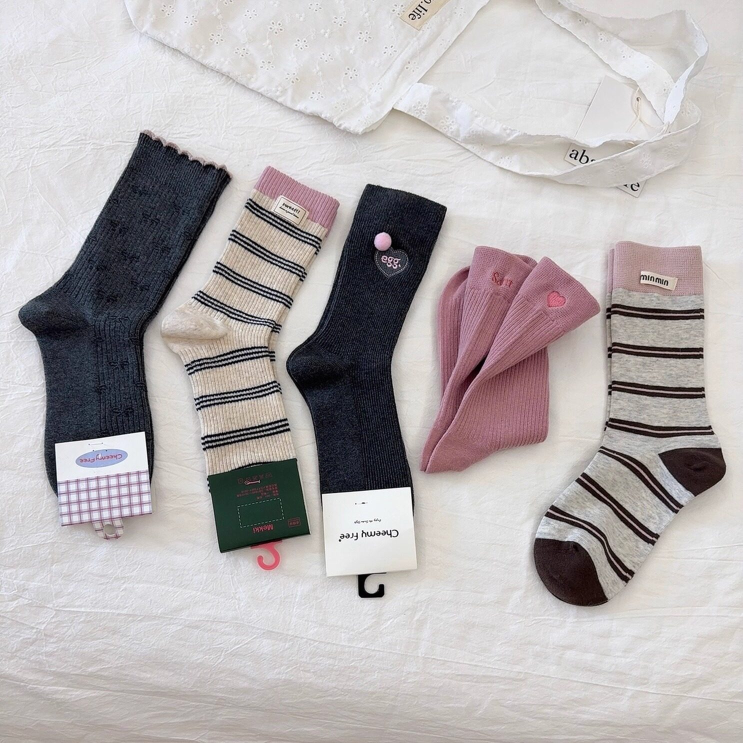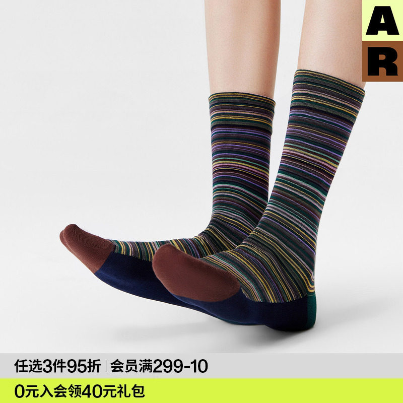 AR袜子女款春夏季薄款撞色条纹中筒袜百搭显瘦堆堆袜复古艺术生袜