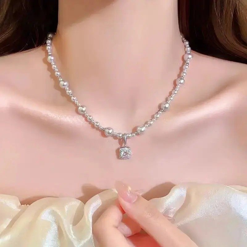 高级感方糖吊坠珍珠项链女2026新款轻奢毛衣链小众百搭锁骨链配饰