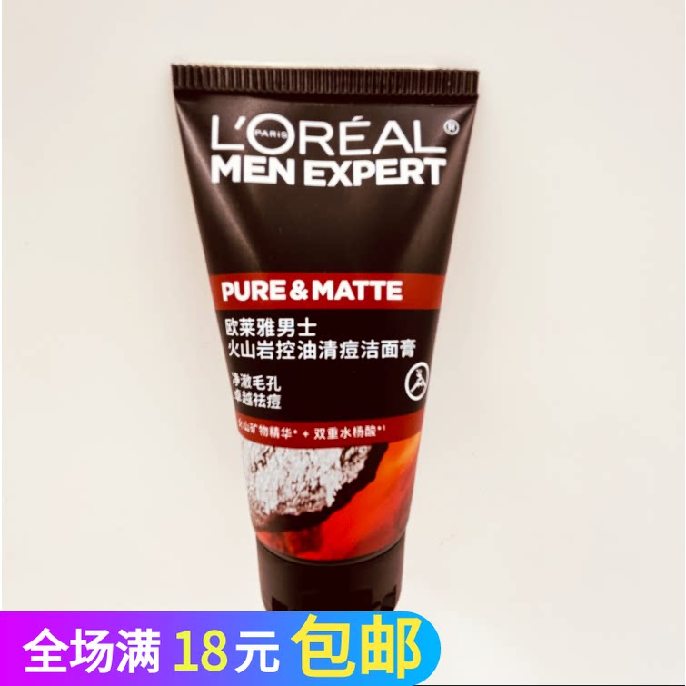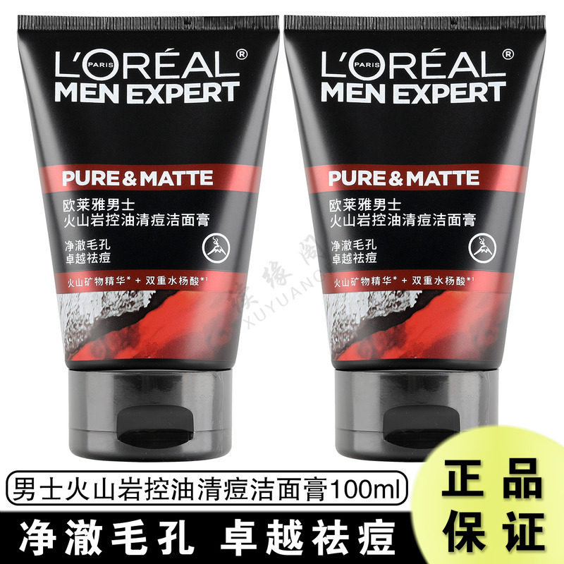 欧莱雅男士火山泥控油清痘洁面膏专业深层洁净祛痘洗面奶进口港货