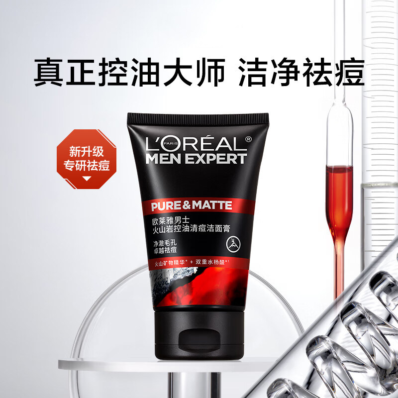 【百亿补贴】欧莱雅男士专用洗面奶祛痘火山岩控油清痘洁面乳清洁