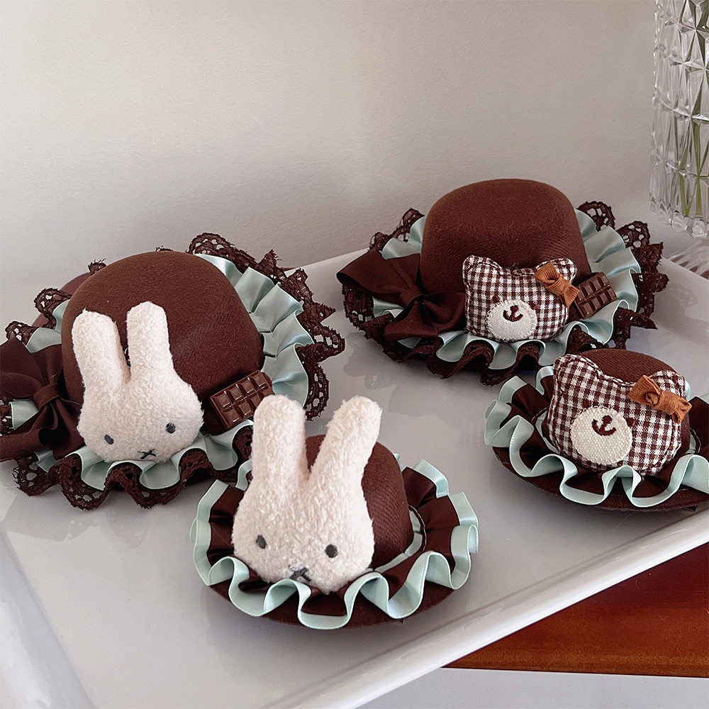 日系可爱兔兔小熊发夹女甜美蕾丝边发饰新款小礼帽头饰小众设计感