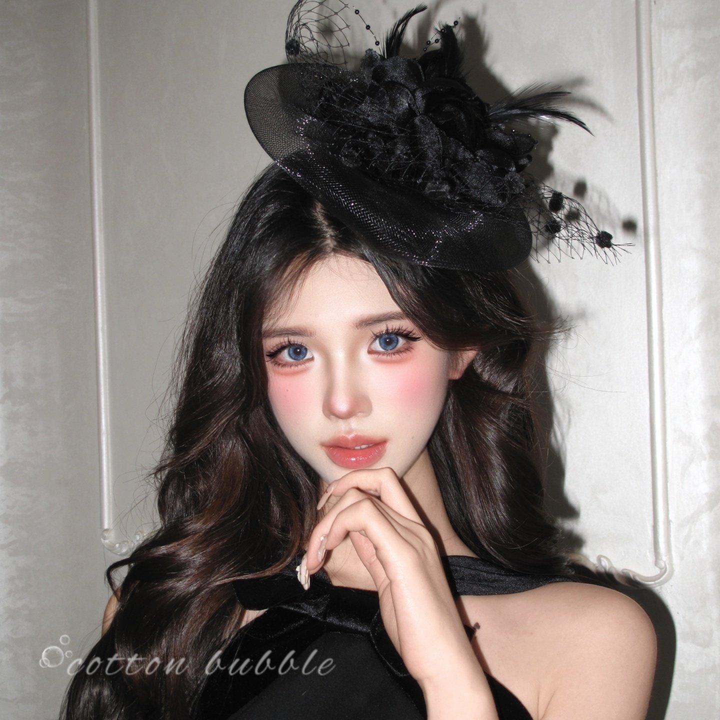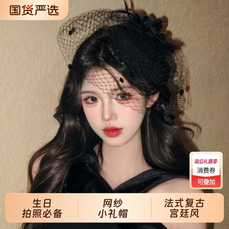 法式赫本风黑色网纱礼帽头饰女复古千金头纱配饰生日帽子发夹发饰