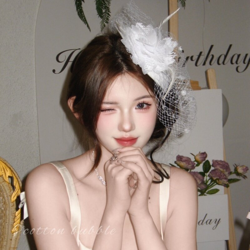 法式千金小礼帽头饰女白色网纱花朵发夹复古民国新娘帽子头纱发饰