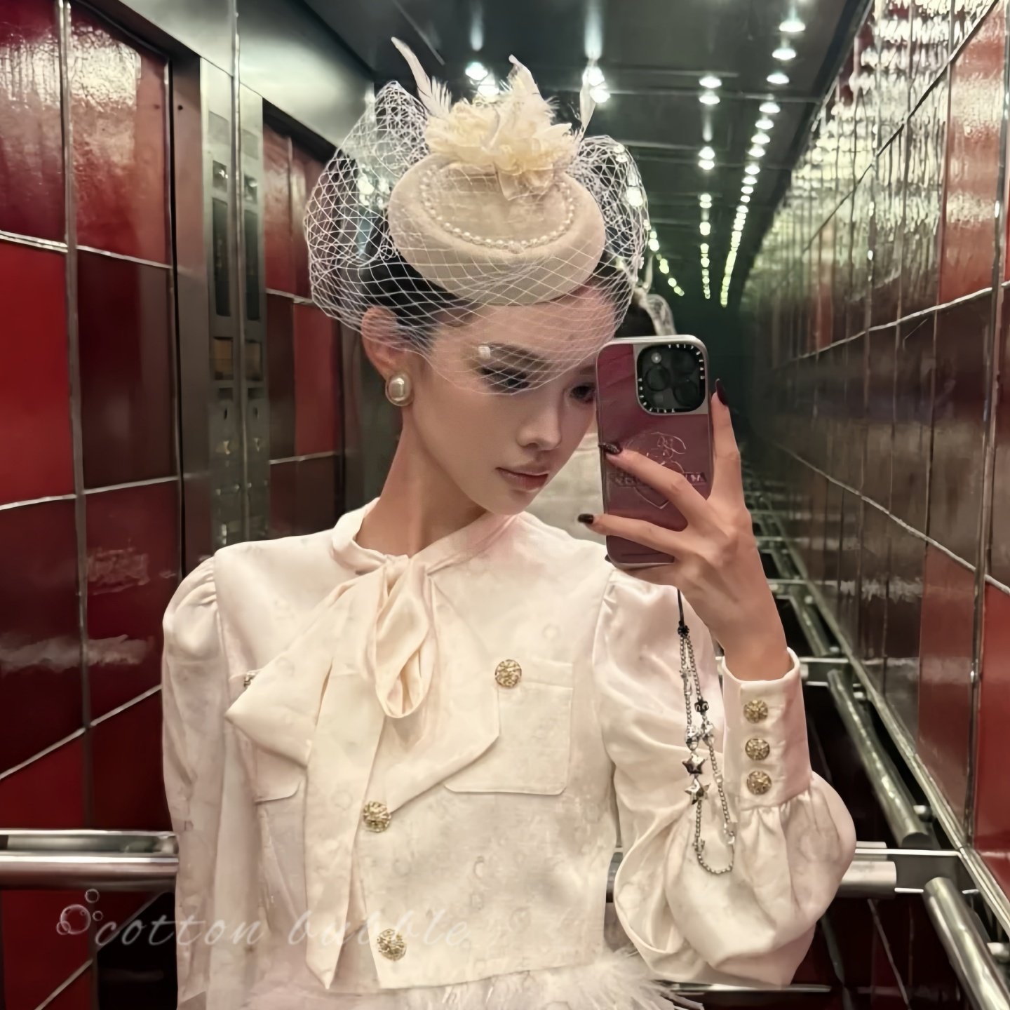 留洋千金!法式米白色网纱小礼帽头饰发夹女复古生日拍照帽子发饰