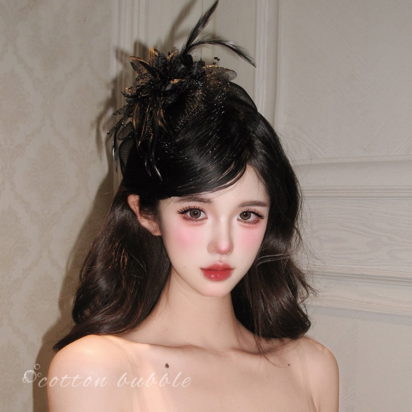 暗黑哥特风lolita黑色花朵小礼帽头饰法式气质羽毛蕾丝帽子发夹女