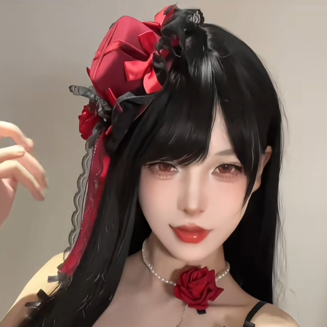 暗黑风复古红色蝴蝶结花边帽夹女万圣节气质lolita蕾丝小礼帽头饰