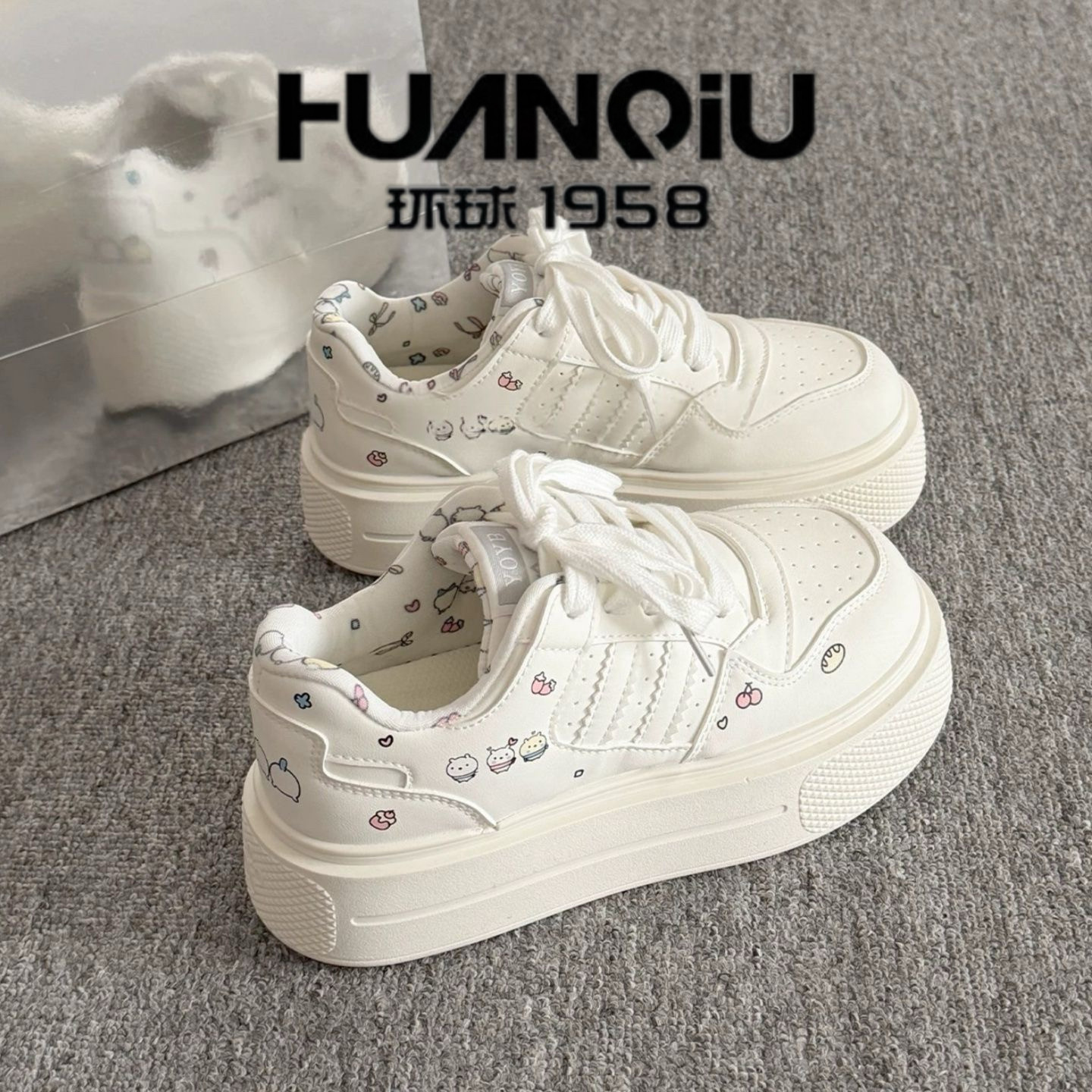 环球小白鞋女鞋新款百搭学生轻便休闲卡通鞋爆款增高板鞋女款鞋子