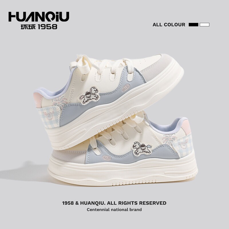 环球小白鞋女款厚底面包鞋百搭蓝色高颜值学生小众校园鞋可爱女鞋