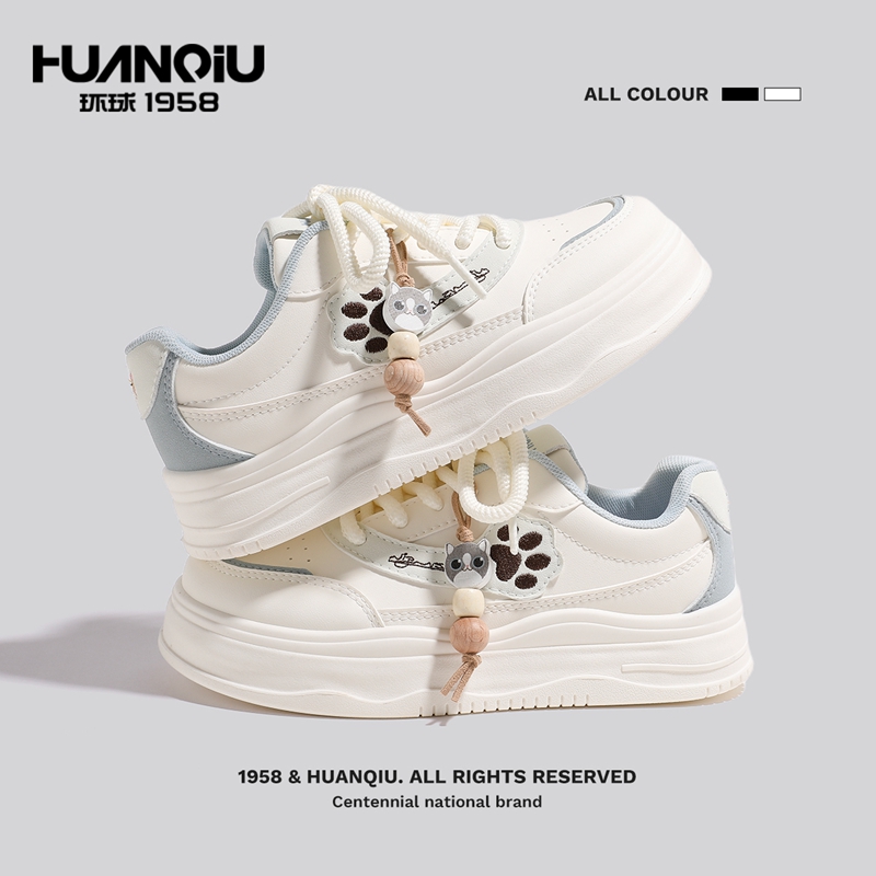 环球小白鞋女款2025新款秋季厚底小众潮流鞋子女百搭休闲面包板鞋