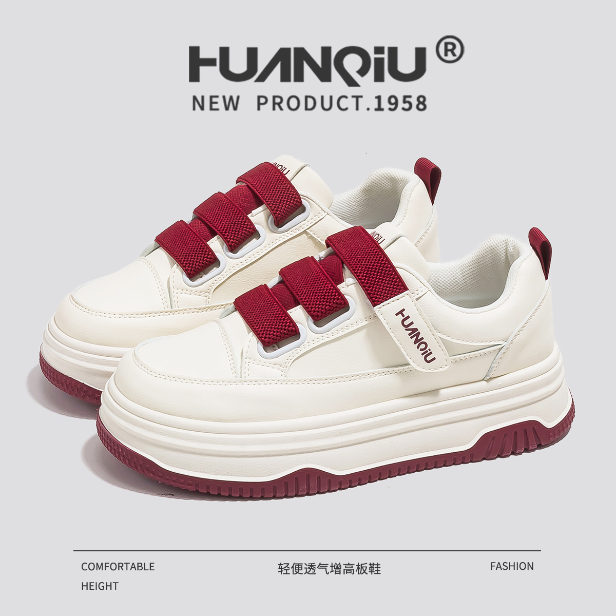 环球小白鞋女鞋厚底百搭爆款休闲运动板鞋秋季新款粘扣时尚鞋子女