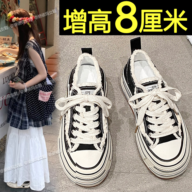 内增高7.5CM帆布鞋女鞋2026新款春夏厚底百搭透气小个子休闲板鞋