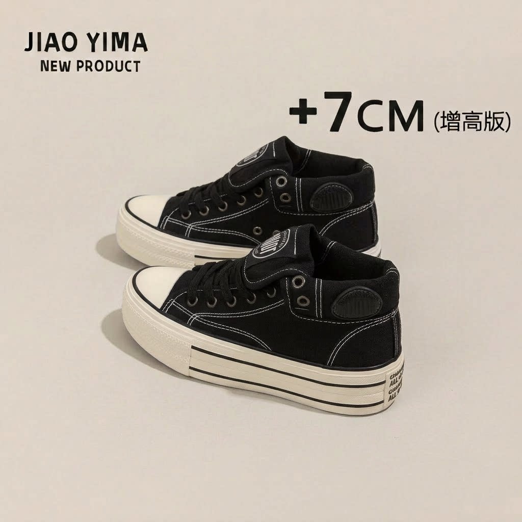 黑色高帮帆布鞋女内增高厚底2026春季新款爆款女鞋高街板鞋ins潮