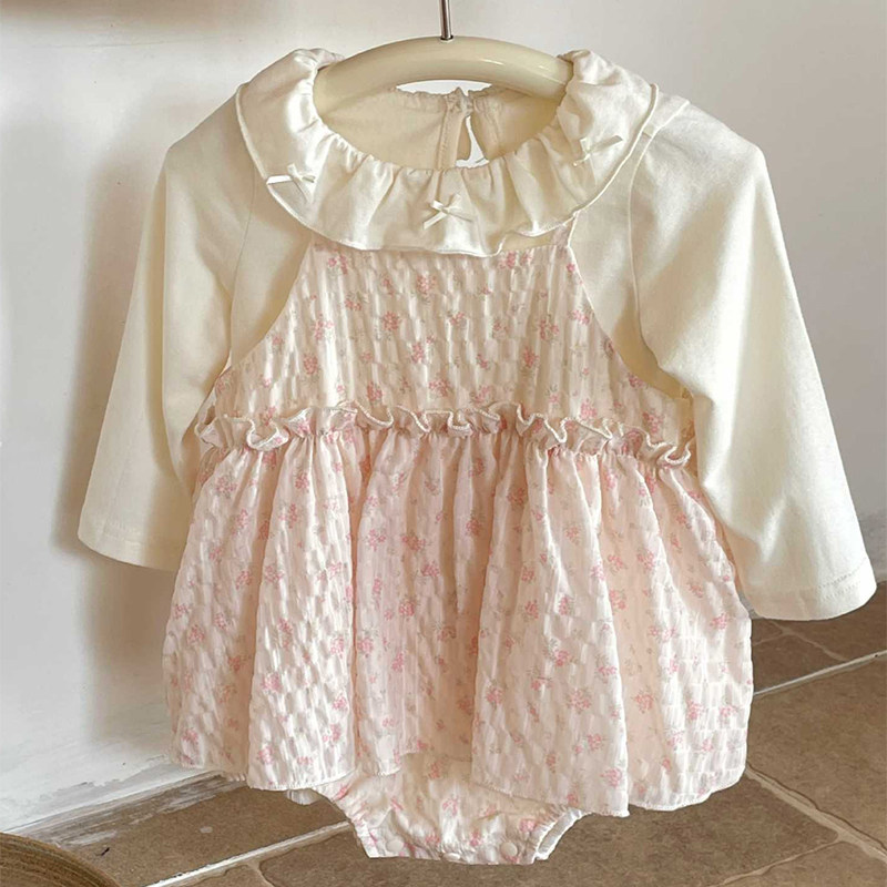 2026春季新款婴儿两件套新生儿衣服女宝宝碎花打底韩版背带裤哈衣