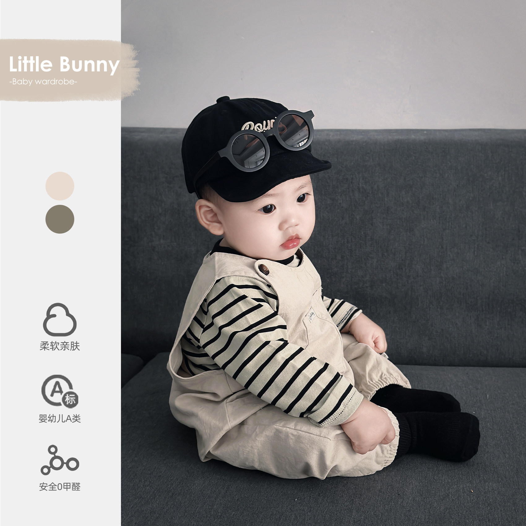 男宝小月龄穿搭2026新品超洋气时髦套装长袖儿童韩版背带裤两件套