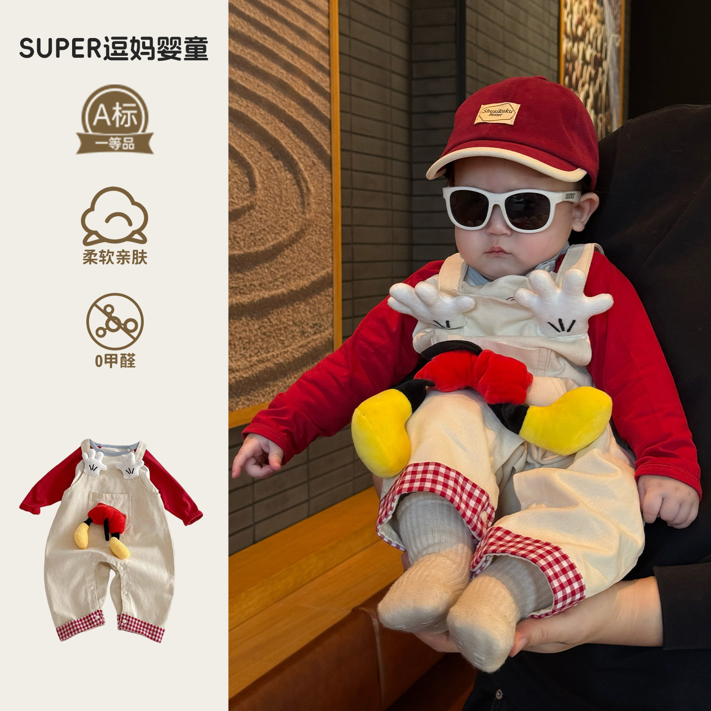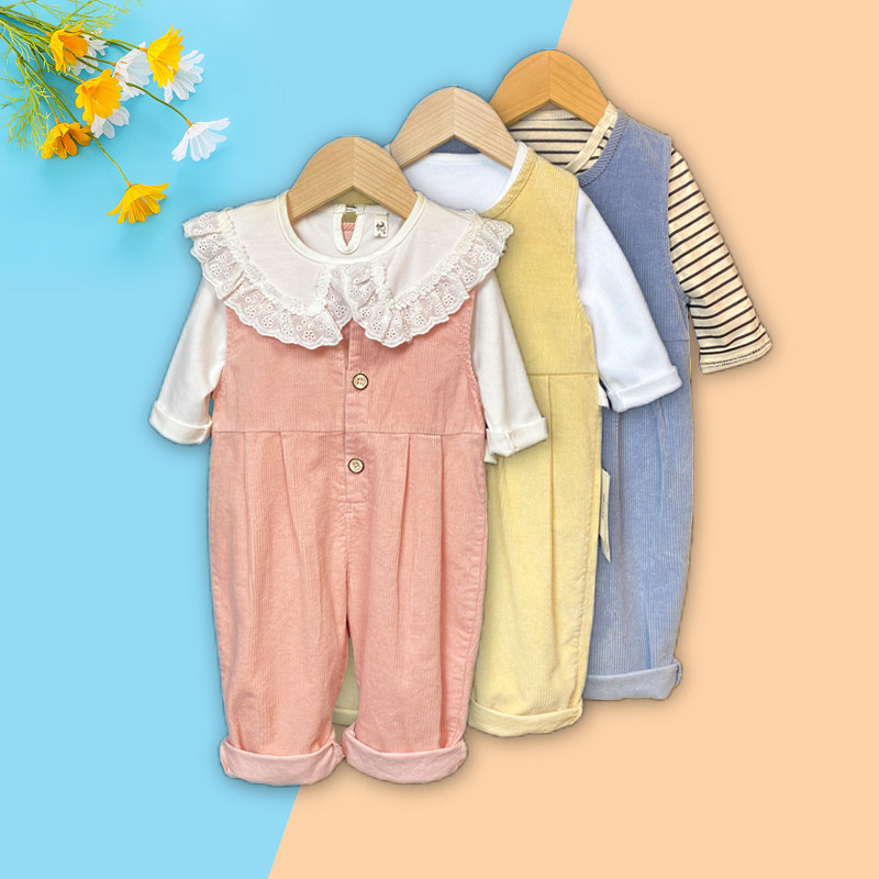 婴儿洋气春装小套装可爱宝宝超萌衣服时尚韩版背带裤两件套外出服
