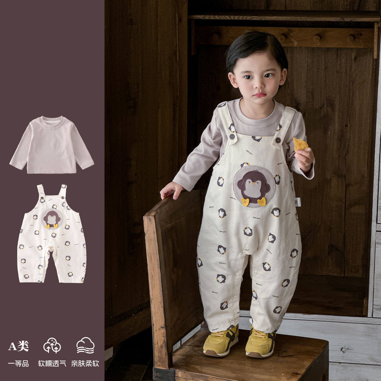 男宝宝春款婴儿韩版背带裤套装儿童恤打底衫2026年洋气童装1