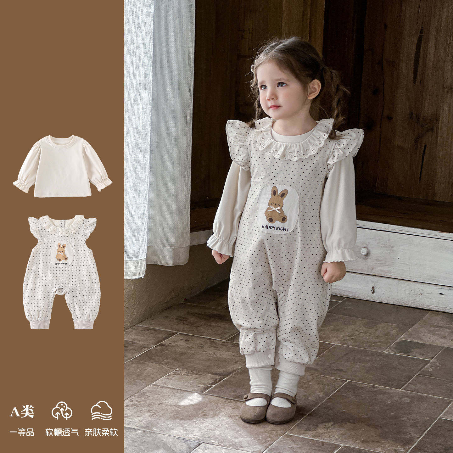 女童春款休闲套装春秋季外出服婴幼儿女宝打底衫韩版背带裤两件套