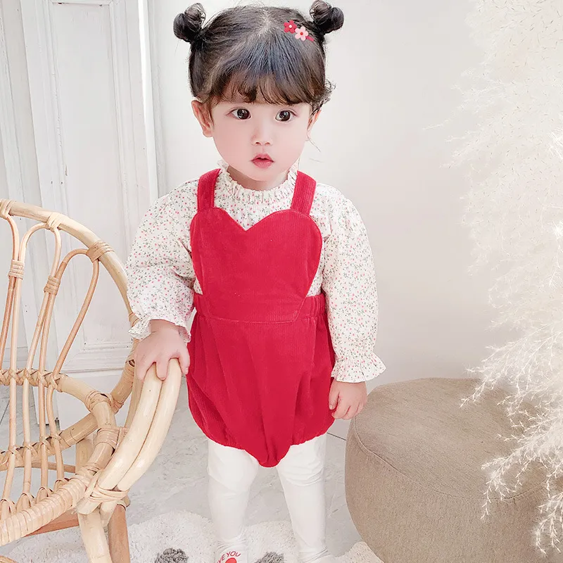 婴儿红色针织包屁衣女宝宝冬季韩版背带裤小月龄针织连体裤两件套