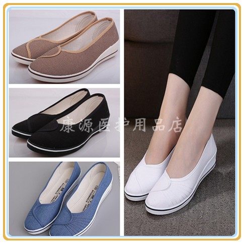 护士鞋女白色坡跟软底小白鞋平底黑色医院工作鞋舞蹈鞋美容院布鞋