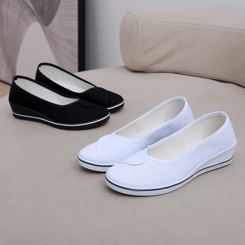 护士鞋软底透气防臭女不累脚秋季防滑布鞋舒适坡跟白色工作鞋布鞋