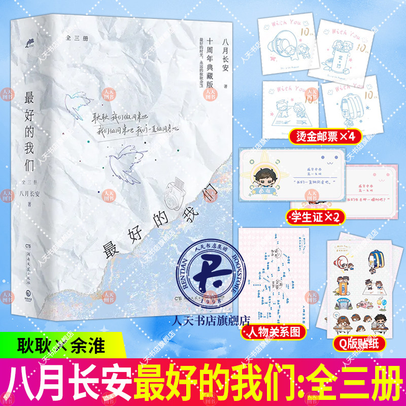 最好的我们 十周年典藏版 套装3册 八月长安【赠烫金邮票+学生证+人物关系图+Q版贴纸】振华中学系列代表作 青春校园言情小说正版