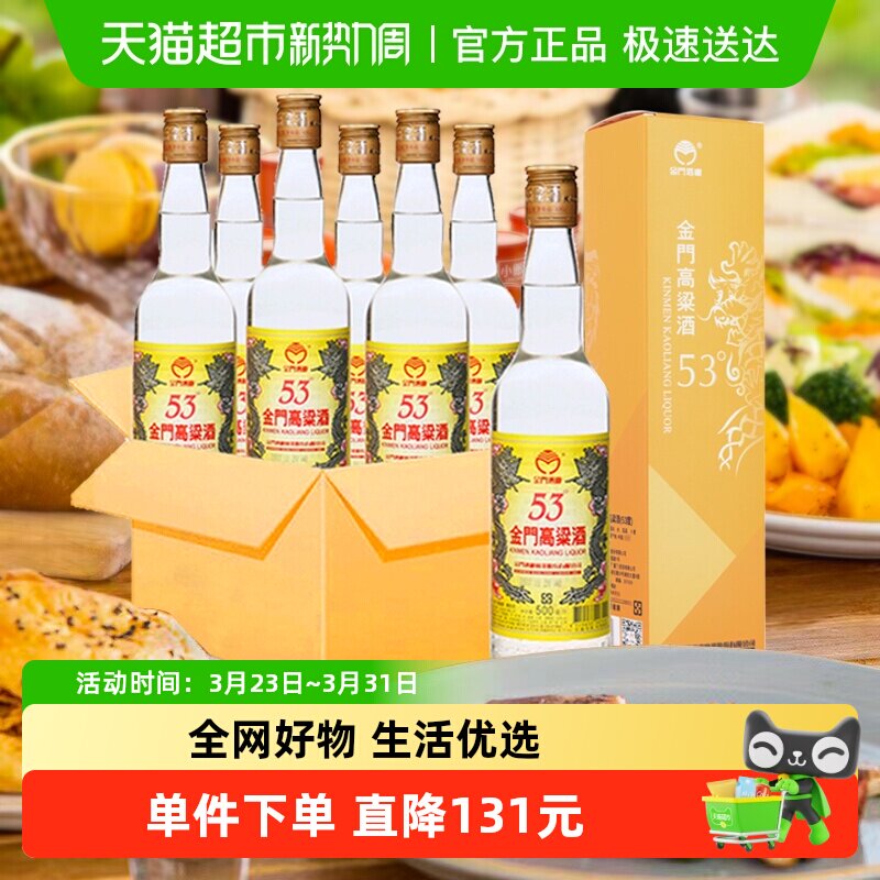 金门高粱酒53度整箱黄金龙500ML*6瓶清香型粮食高度白酒酒水送礼