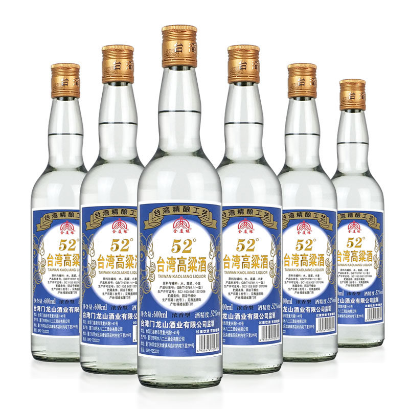 台湾高粱酒浓香型52度金门纯粮食口粮酒固态法光瓶白酒整箱6瓶