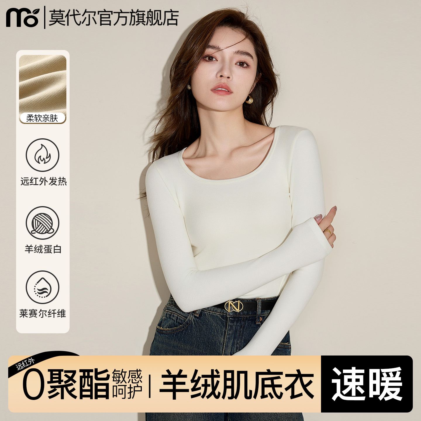 莫代尔打底衫女大圆领内搭长袖薄款T恤双U领秋衣2025冬季低领上衣