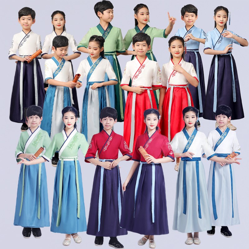 汉服男童儿童古装国学服女开笔礼演出服书童小学生三字经表演服装