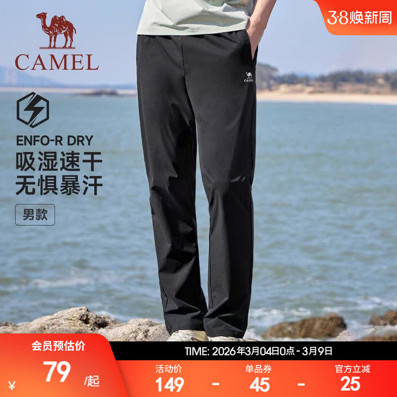 骆驼速干运动裤男士夏百搭直筒长裤女户外透气休闲裤健身跑步裤子