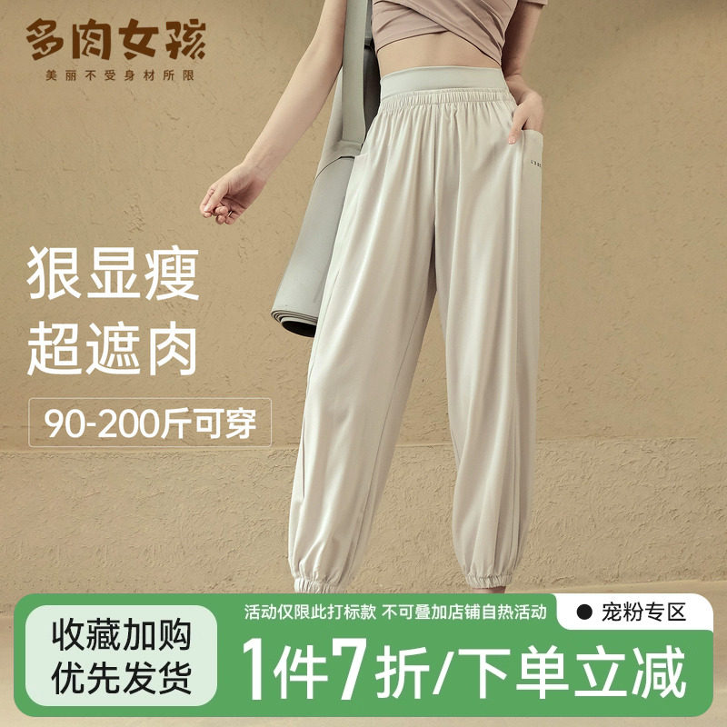 大码胖MM运动裤女速干弹力束腰裤宽松休闲跑步训练瑜伽服健身长裤