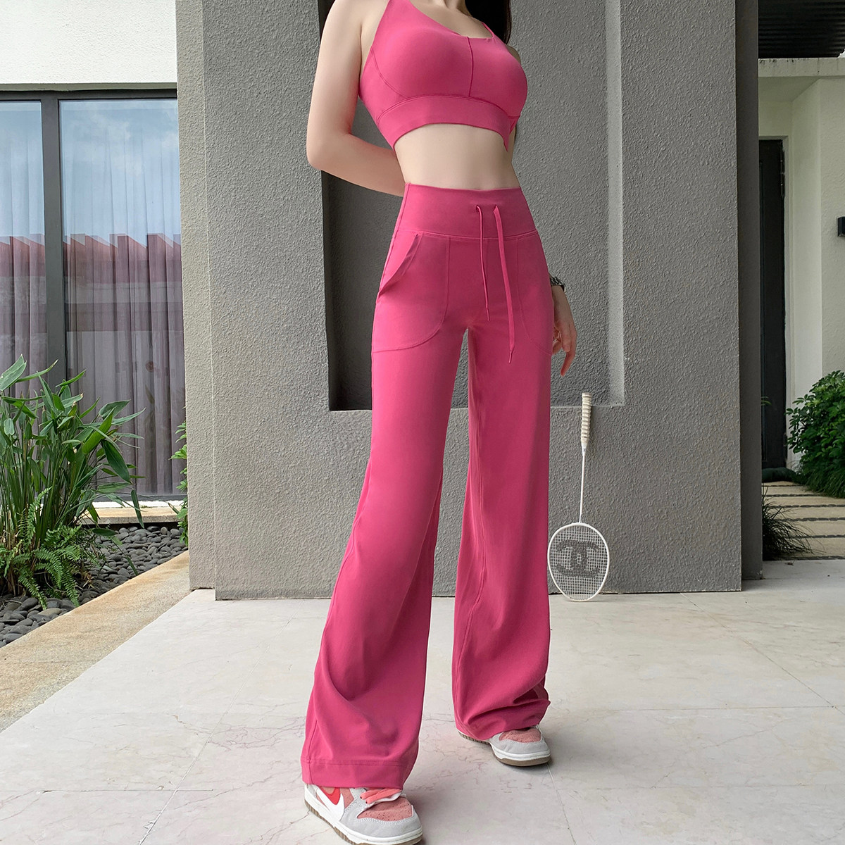 Byu run 新款系绳阔腿运动裤女速干运动健身瑜伽裤高腰直筒休闲裤