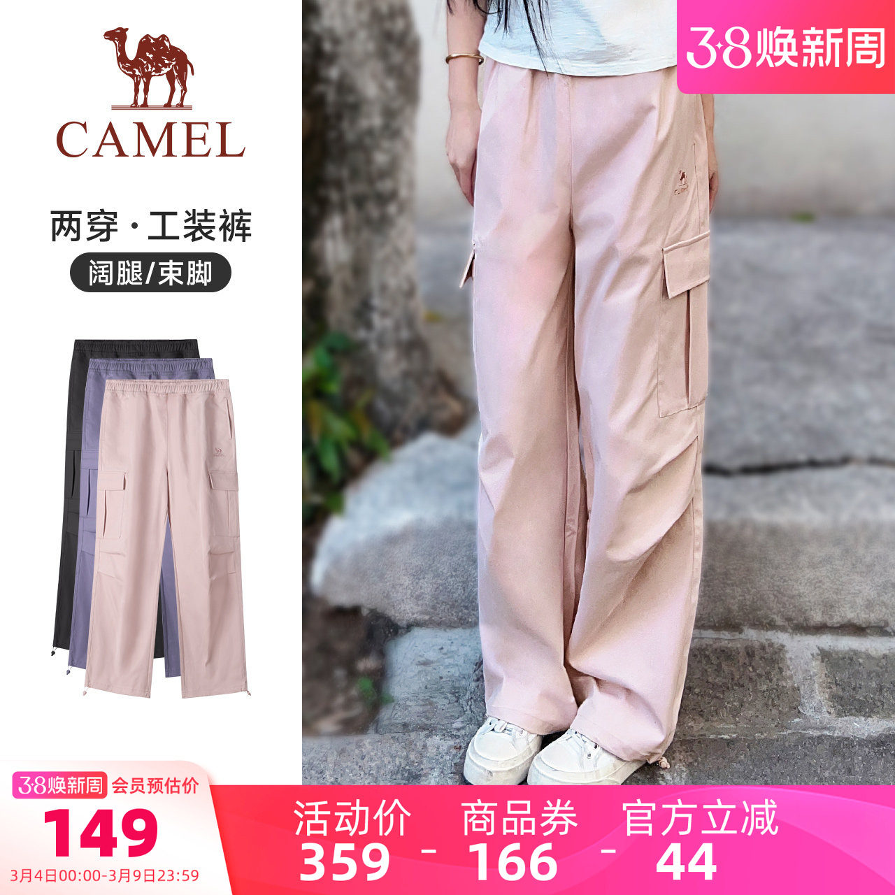 骆驼运动工装裤女速干冰感防晒26夏季直筒休闲户外伞兵登山裤男