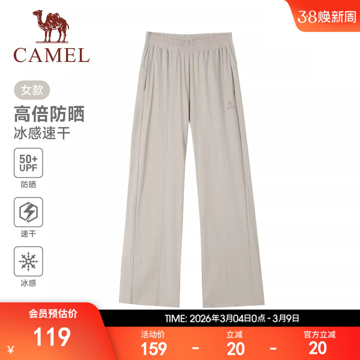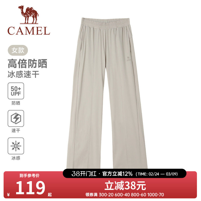 骆驼运动裤女速干防晒阔腿裤2026夏季薄款宽松透气凉感休闲裤