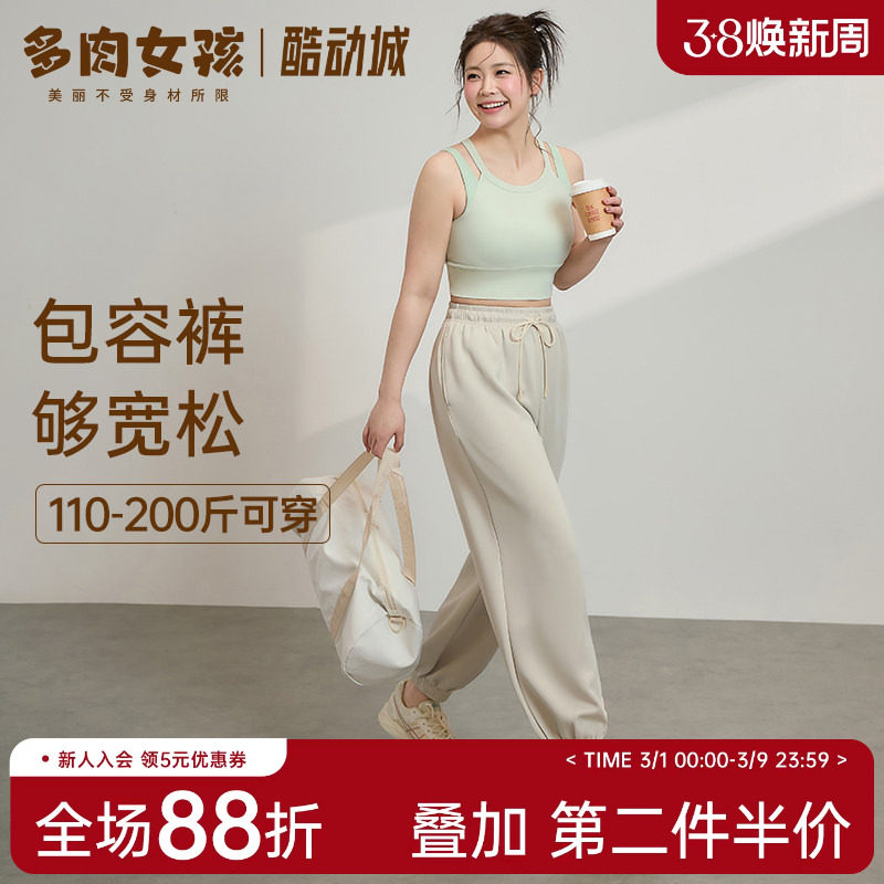 大猫运动裤女速干弹力束腰裤宽松休闲跑步训练大码瑜伽服健身长裤