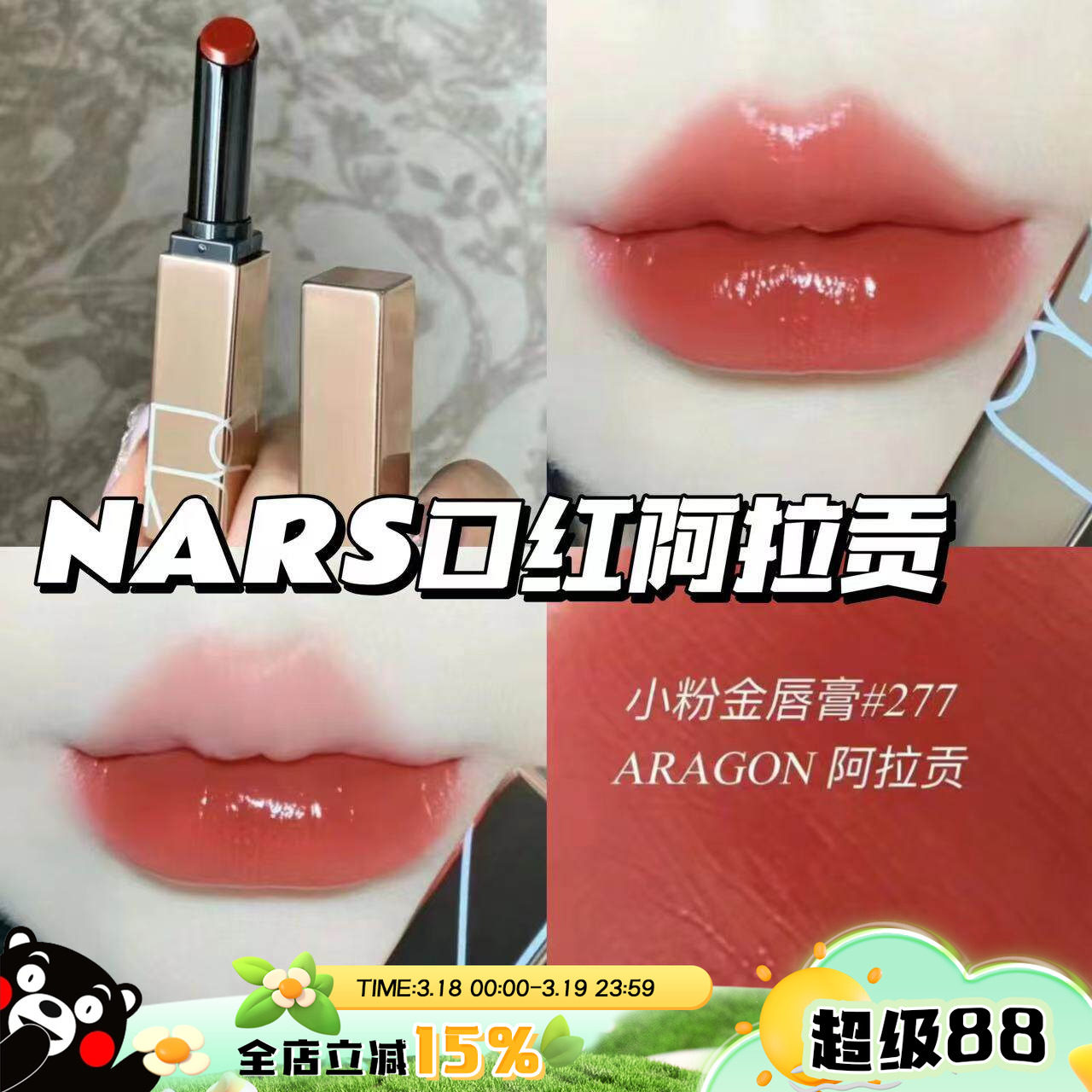 NARS纳斯2024春季限量水光粉金管滋润口红阿拉贡277眼影马赛克盘