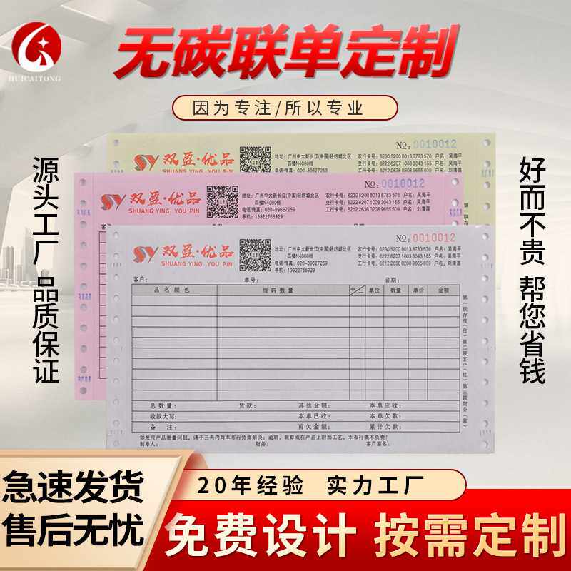 电脑票据连续无碳覆写针式打印纸机打带孔联单印刷定制出货单定做