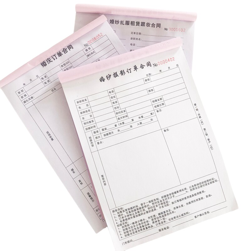 婚纱店婚庆租赁合同订单本收据摄影礼服租赁跟妆合同定制联单印刷