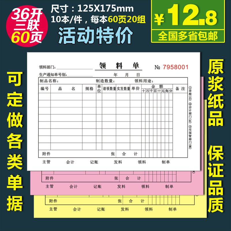 领料单退料单二三四联发料单仓库材料车间两联复写联单印刷订定做