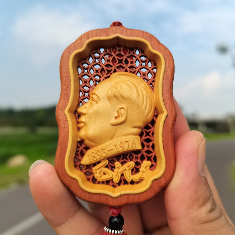 毛主席头像车载挂件黄杨木雕伟人车内挂饰出入平安汽车吊饰装饰品