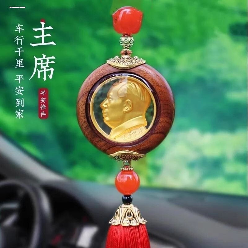【1个包邮】新款毛主席车饰出入平安汽车挂饰檀木挂件后视镜网红