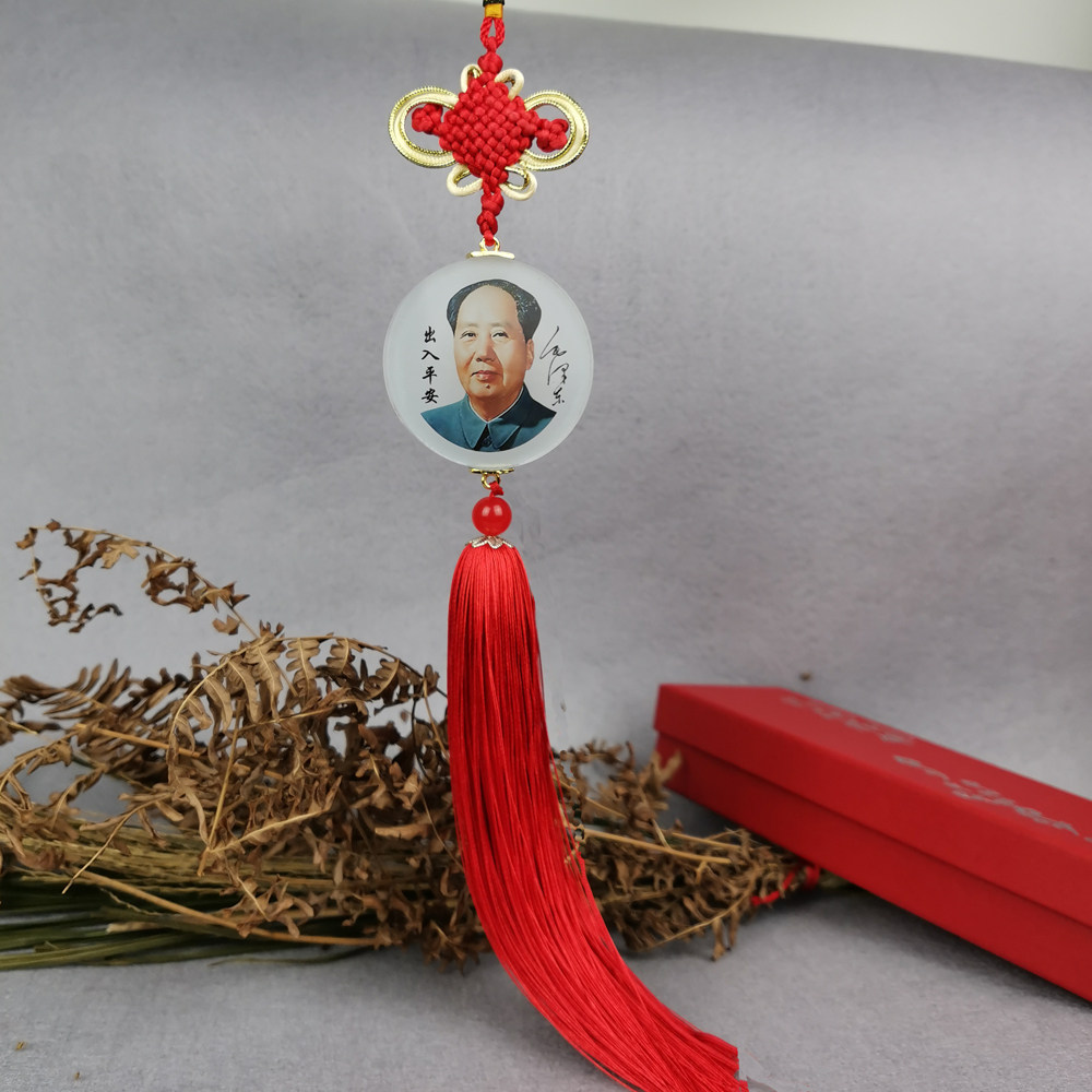 毛主席汽车挂件中国结水晶高档毛泽东像车内平安符出入平安车饰品