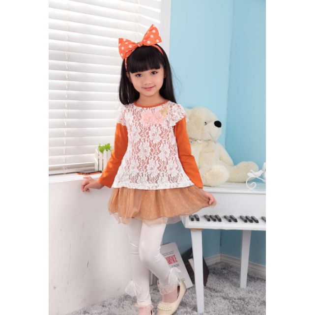 女童秋装连衣裙 2026新款宝宝公主风蕾丝拼接连衣裙 儿童韩版裙