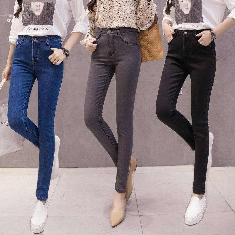 - 高腰牛仔裤女 长裤 显瘦 韩版