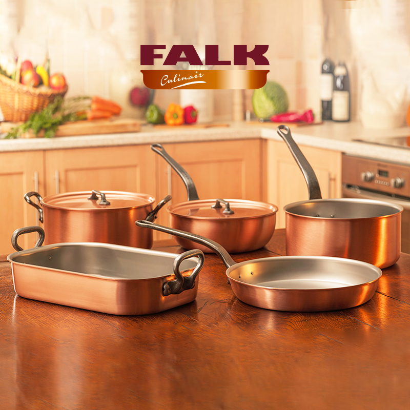 比利时FALK进口铜制平底牛排煎锅深煎锅炖锅汤锅家用煎蛋煎烤锅