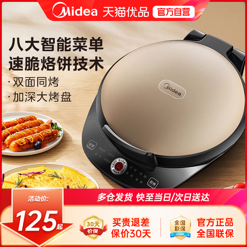 美的电饼铛双面加热煎烤机家用可拆洗烙饼锅薄饼机加深加大烹饪机