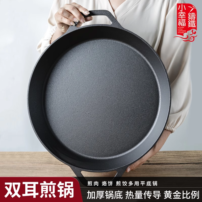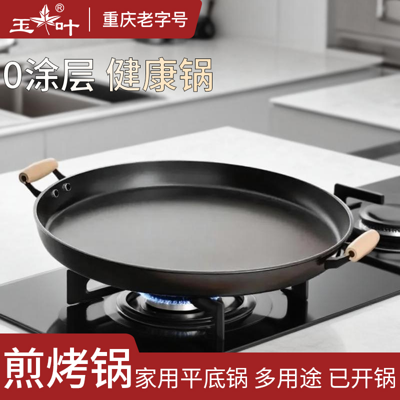 特厚煎烤锅家用烙饼烧烤无涂层不粘不锈纯铁锅免开锅电磁炉燃气灶