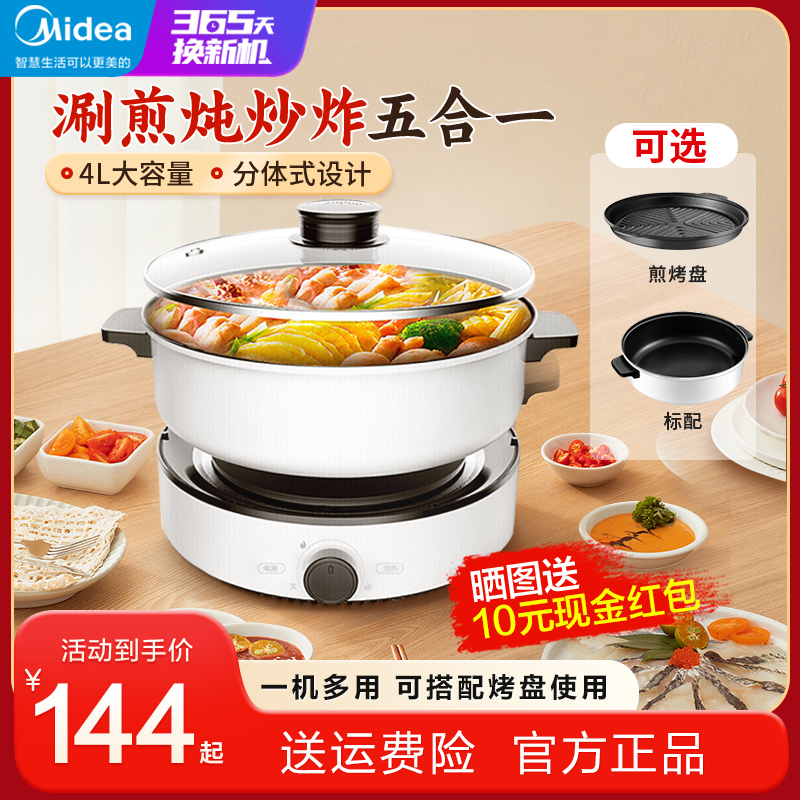 美的电热火锅家用电煮锅分体式火锅煎烤多功能料理锅电炒锅电蒸锅