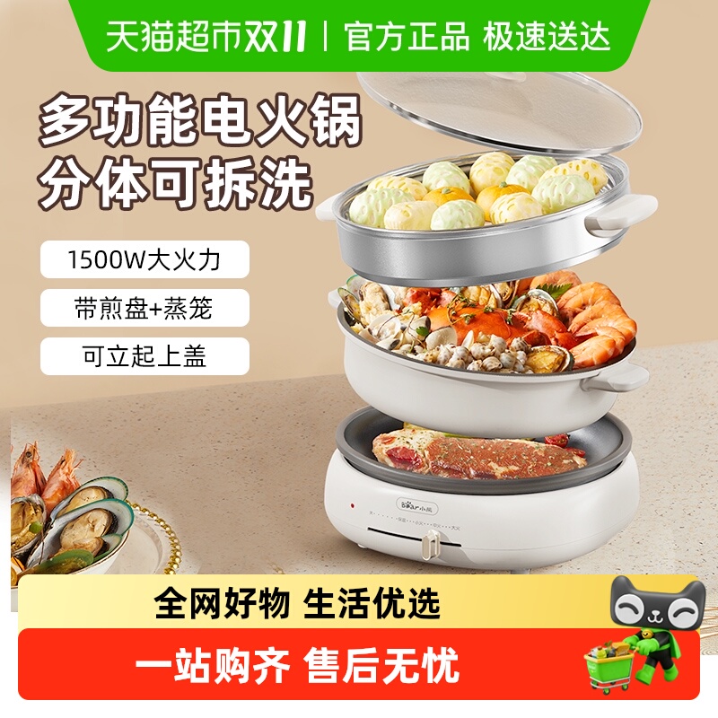 小熊电火锅家用分体式火锅专用多功能电煮锅蒸煮一体电炒锅煎烤锅