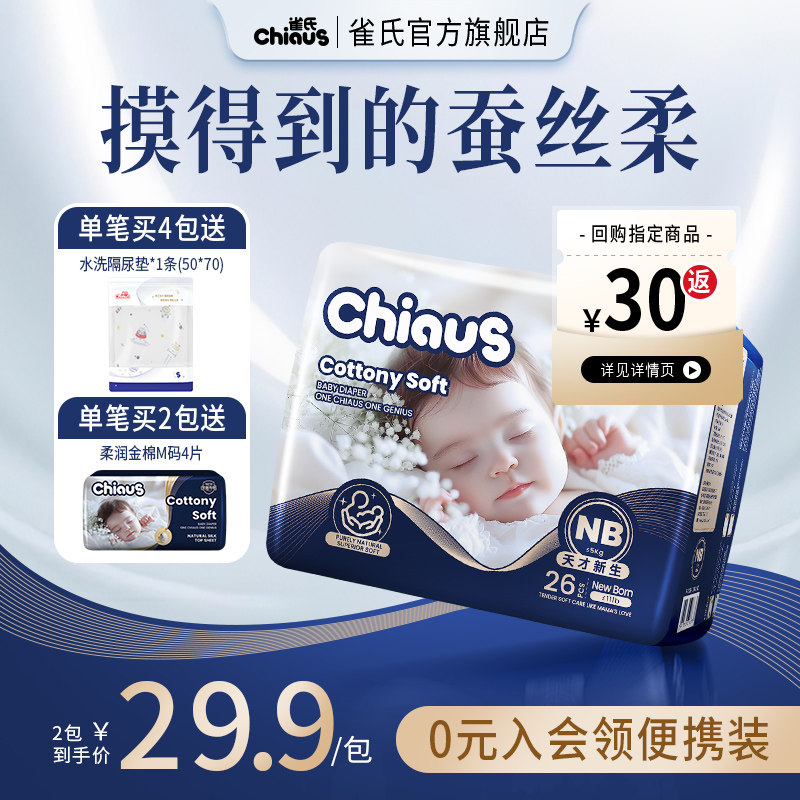 【淘秒】雀氏出口铂金婴儿纸尿裤NB,S,M尿不湿试用MINI装共20片